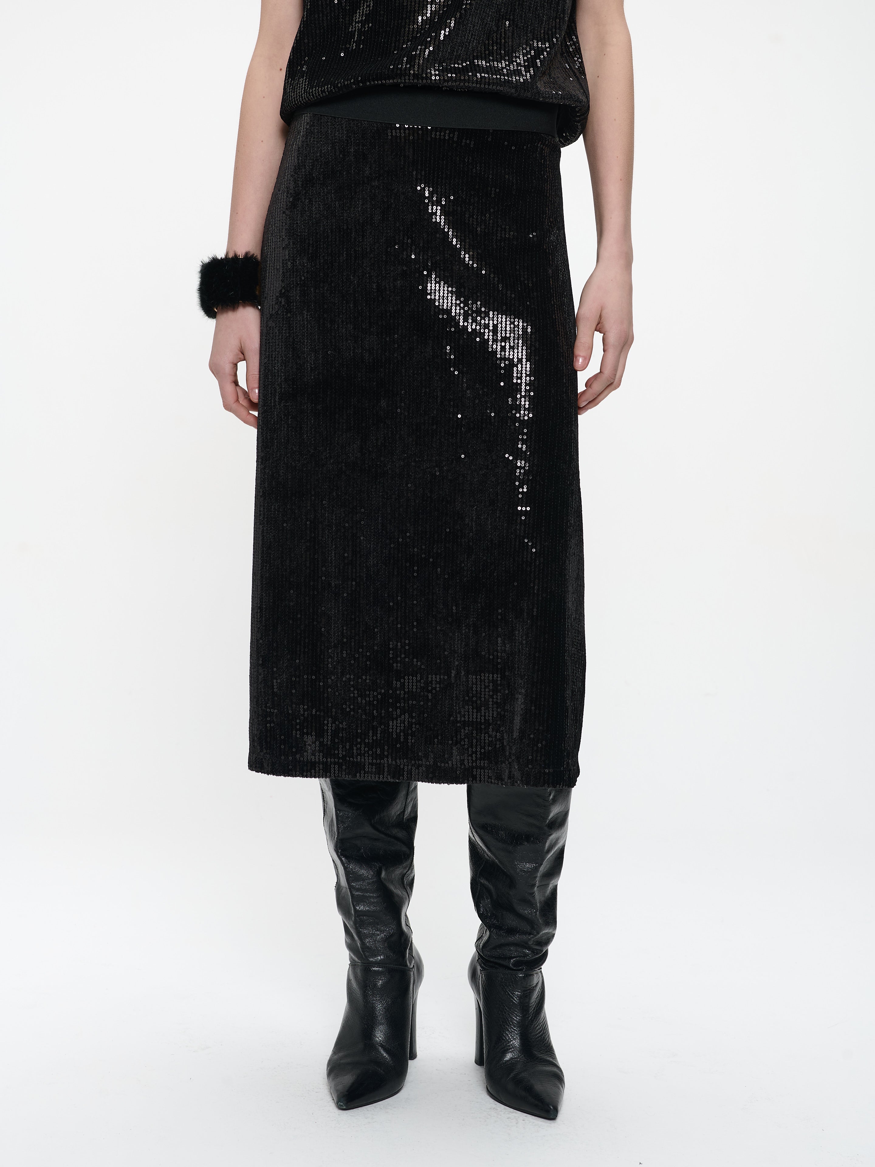 Setzen Sie mit dem Pallina Paillettenrock einen funkelnden Akzent bei jedem Schritt. Dieses umwerfende Kleidungsstück kombiniert eine schlanke Silhouette mit hochglänzenden Pailletten für einen mühelos eleganten Look. Hergestellt aus recycelten Materialien, ist es eine bewusste Wahl für glamouröse Abende. Der schmeichelhafte Midilänge-Rock lässt sich wunderbar mit dem passenden Oberteil oder einem schlichten Strickpullover kombinieren.