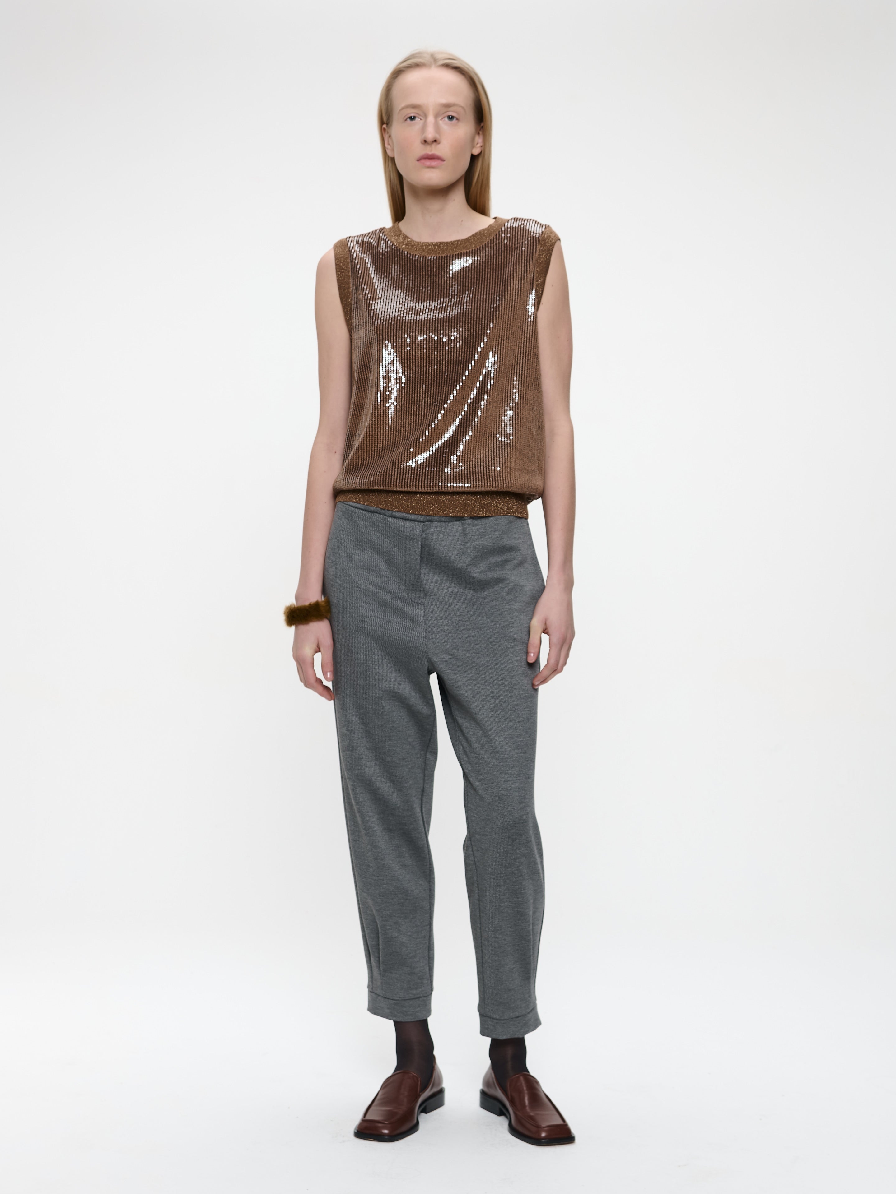 Yvette-Hose: Verleihen Sie Ihrer Garderobe subtile Eleganz mit der Yvette Pants, die aus strukturiertem High-Tech-Jersey gefertigt ist. Mit ihrer klassischen Form und den geraden Beinen verbindet diese Hose zeitlosen Stil mit einem modernen Touch und eignet sich sowohl für legere als auch für formelle Anlässe.