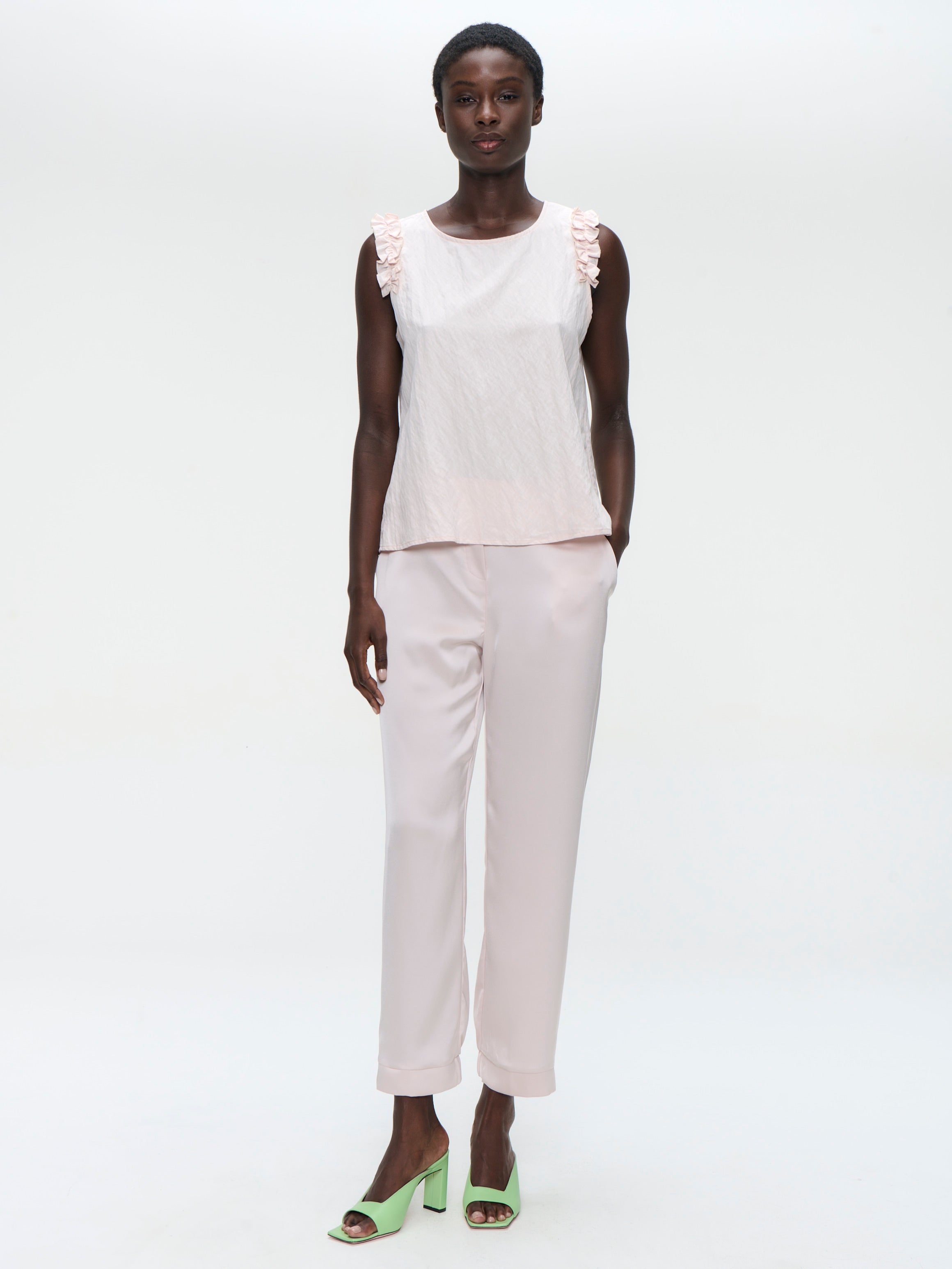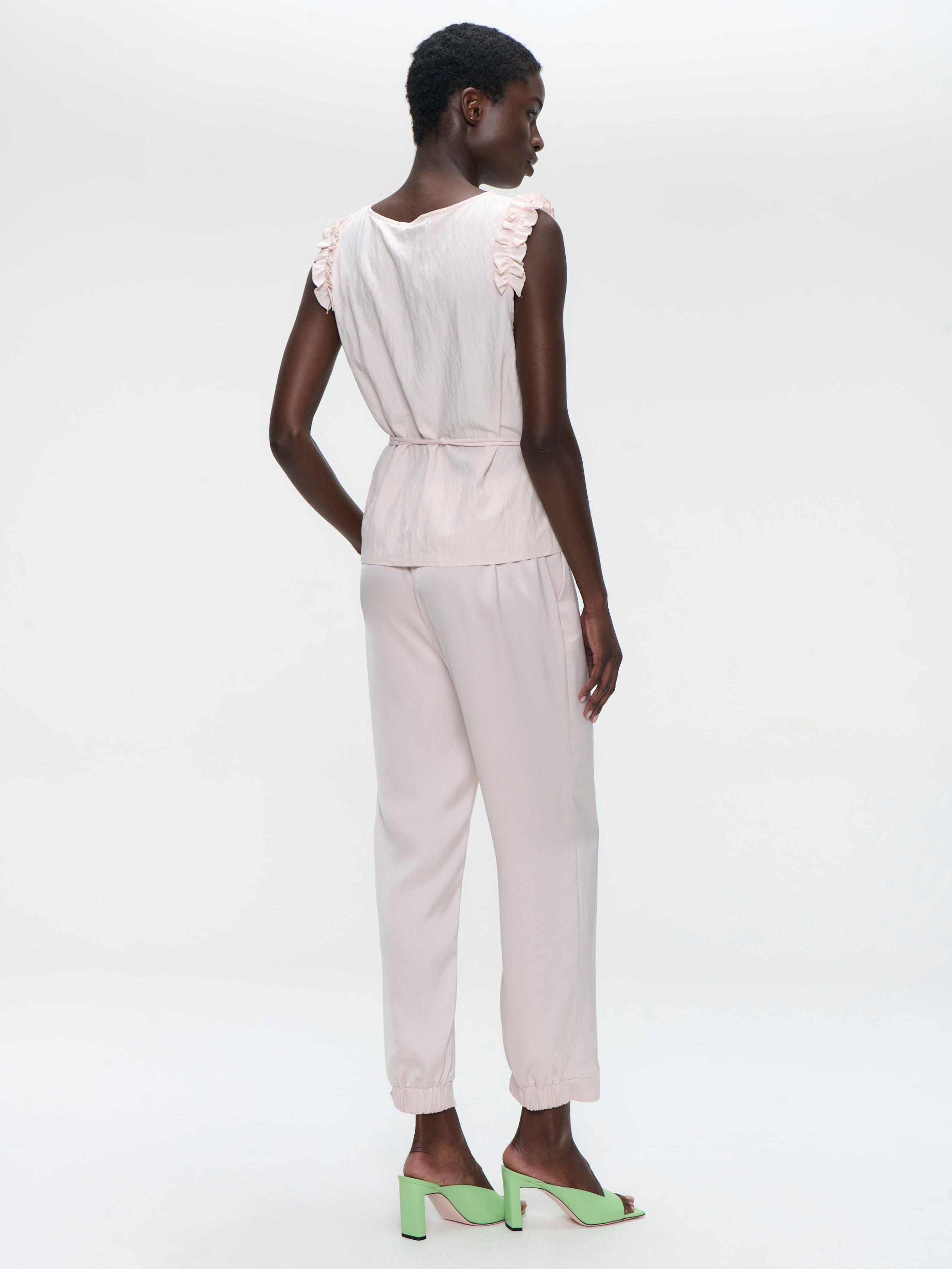 Loren-Hose: Die aus recyceltem Polyester gefertigte Loren Pants hat ein schmeichelhaftes, ausgestelltes Design mit weichem Faltenwurf und femininem Flair. Der elastische Bund sorgt für Komfort, während die seitlichen Schlitze einen stilvollen Akzent setzen, perfekt für lässige und schicke Looks.