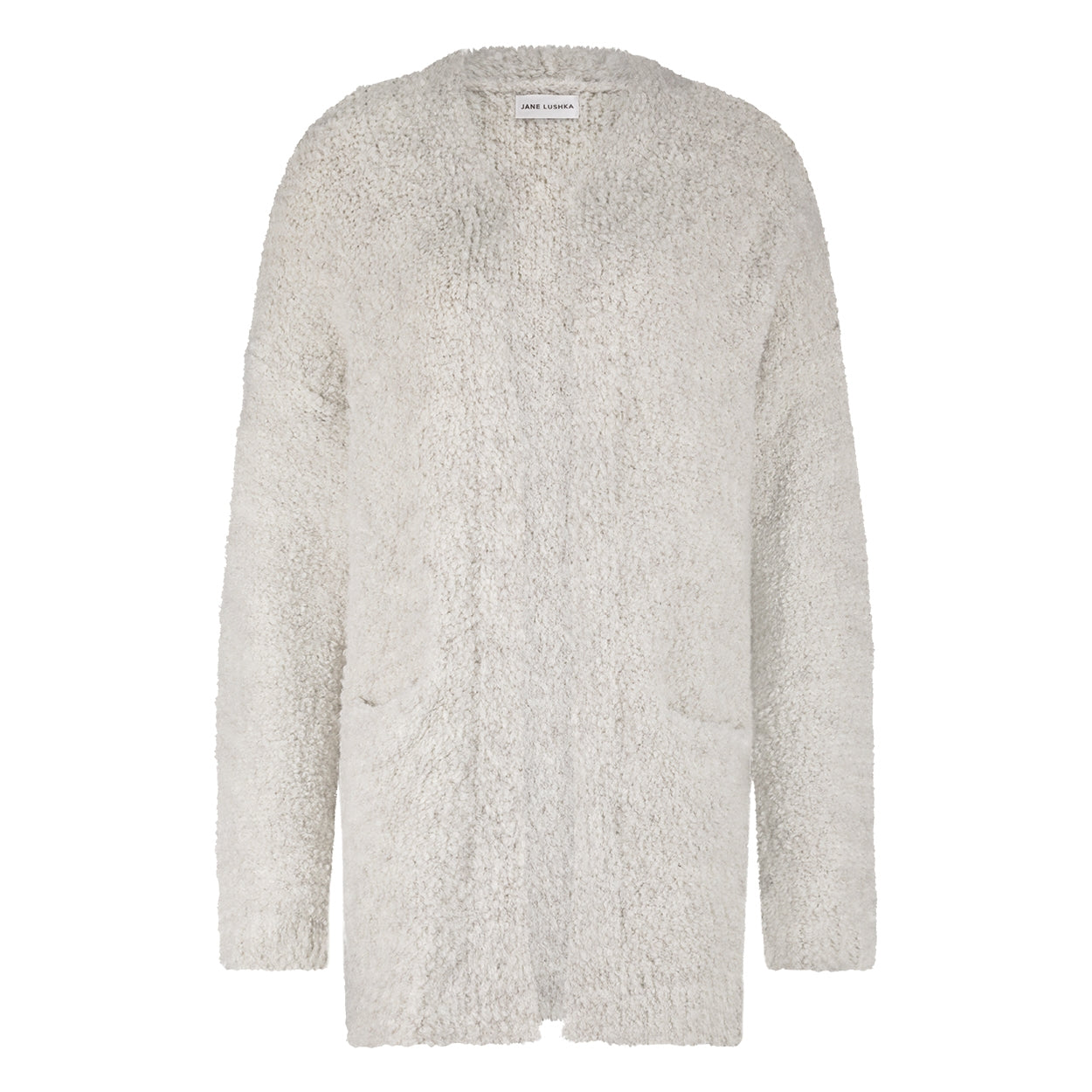 • Bouclé-Strickjacke mit durchgehendem Reißverschluss