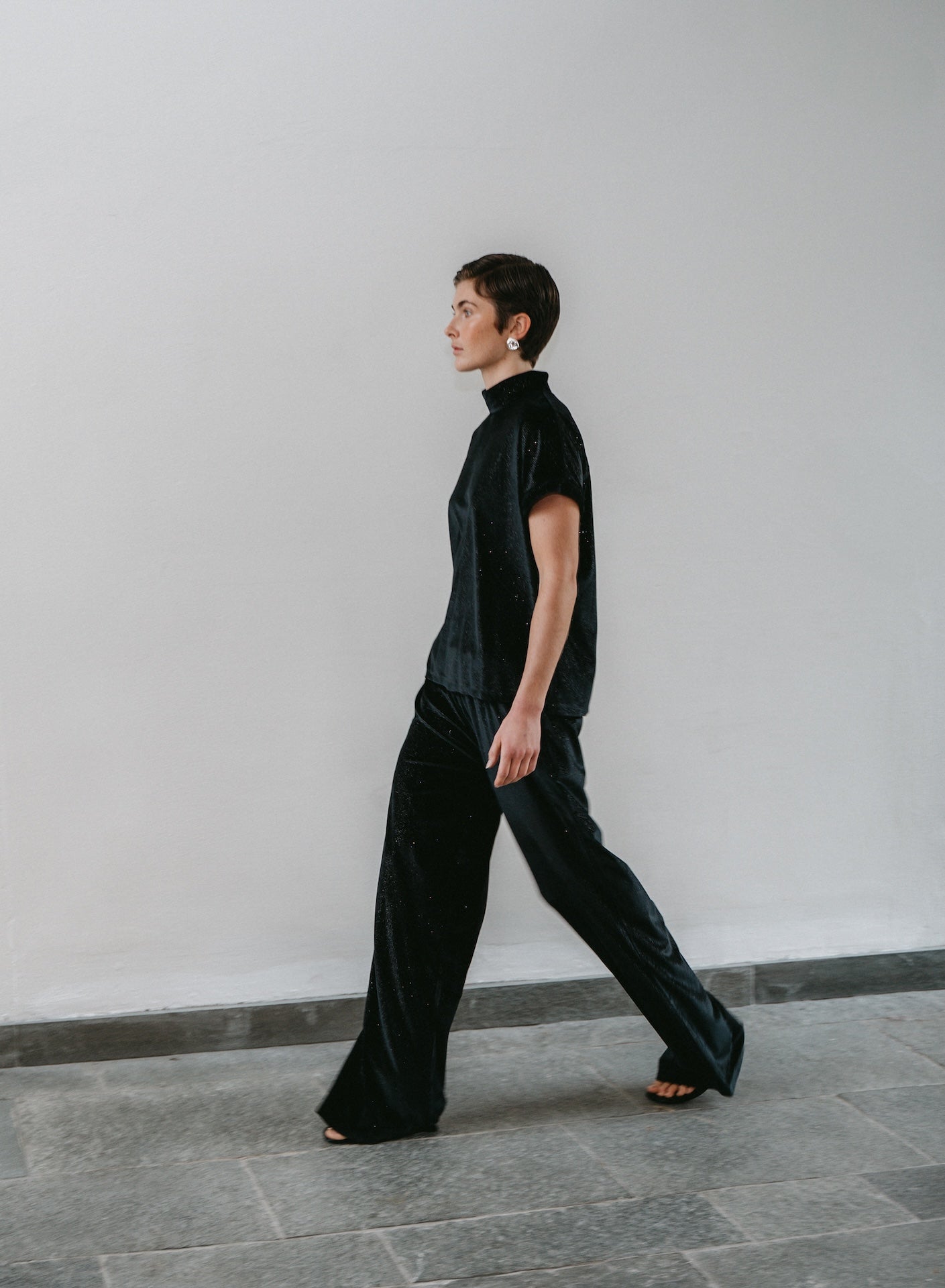 Die Simone Velvet Pants vereinen entspannte Eleganz mit moderner Leichtigkeit. Aus einem samtigen Stoff gefertigt, der jedem Outfit einen dezenten Glanz verleiht, überzeugen sie mit weitem Bein und elastischem Bund – ideal für stilvolle Alltagslooks oder elegante Abendauftritte.