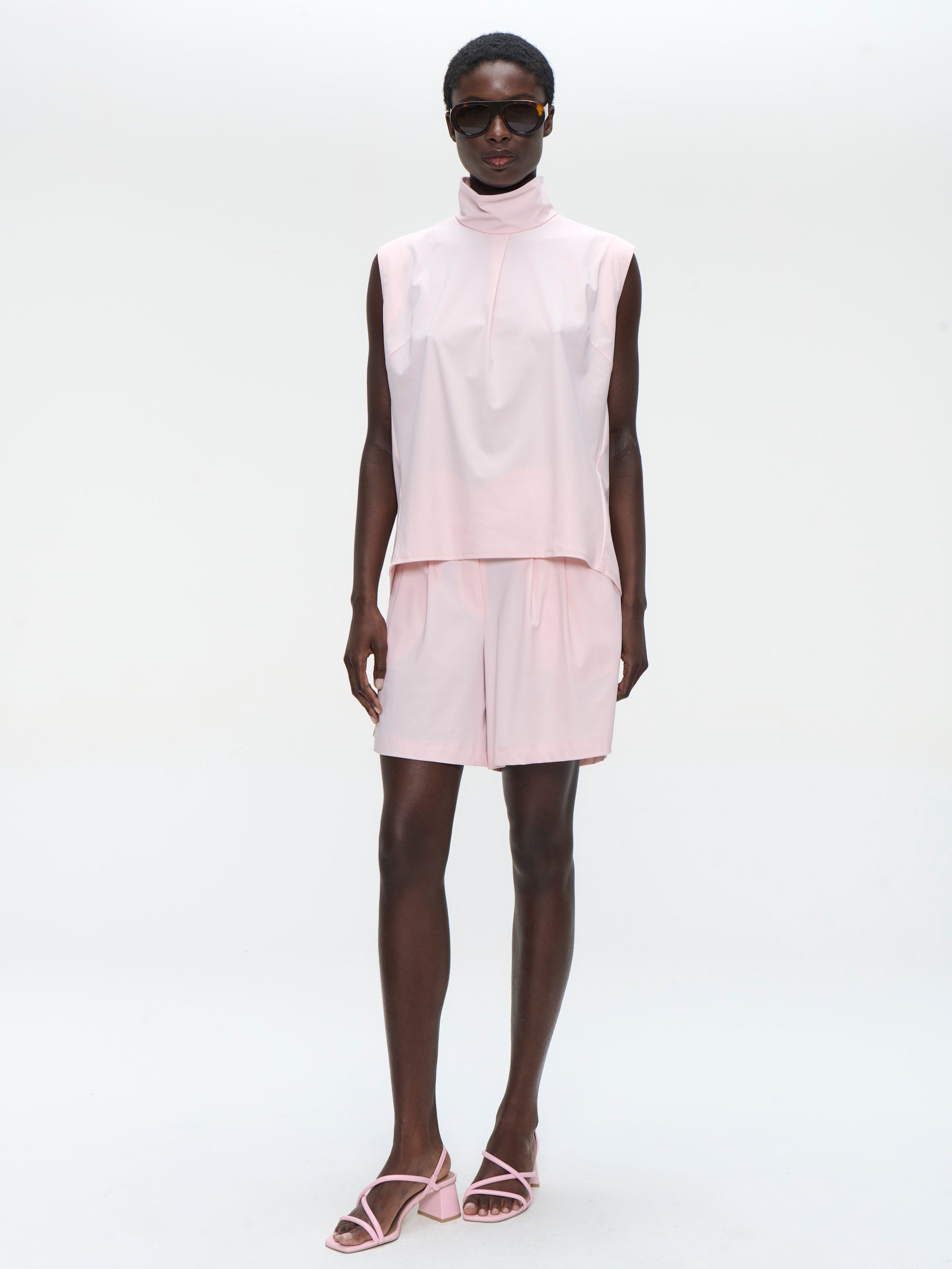 Eine mutige Verbindung von Komfort und Stil, das Angelika Top besteht aus weichem, wildlederähnlichem technischem Jersey in einem satten Braunton. Mit einem Stehkragen und asymmetrischer Frontleiste bietet dieses Stück eine moderne Note bei gleichzeitig klarer Silhouette. Ideal zum Kombinieren mit maßgeschneiderten Hosen oder lässigen Röcken, für einen mühelos schicken Look.