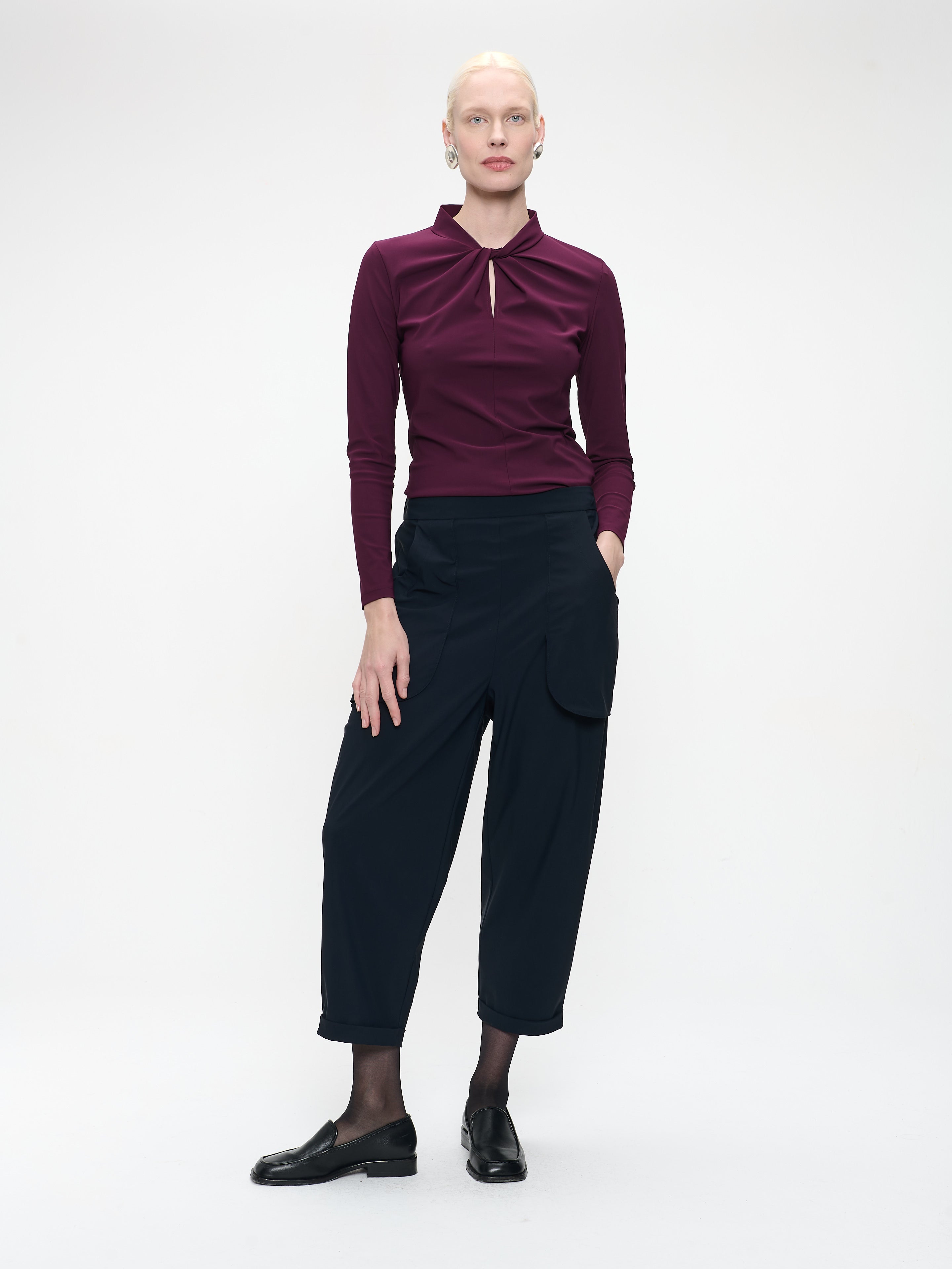 Iva Stretch Bluse aus technischem Jersey: Die Iva Bluse ist aus leichtem, technischem Jersey gefertigt und bietet eine klassische Silhouette mit einem modernen Twist. Mit subtilen Details an den Ärmeln kombiniert diese Bluse Komfort mit schlichter Eleganz und eignet sich sowohl für den Alltag als auch für raffinierte Anlässe.