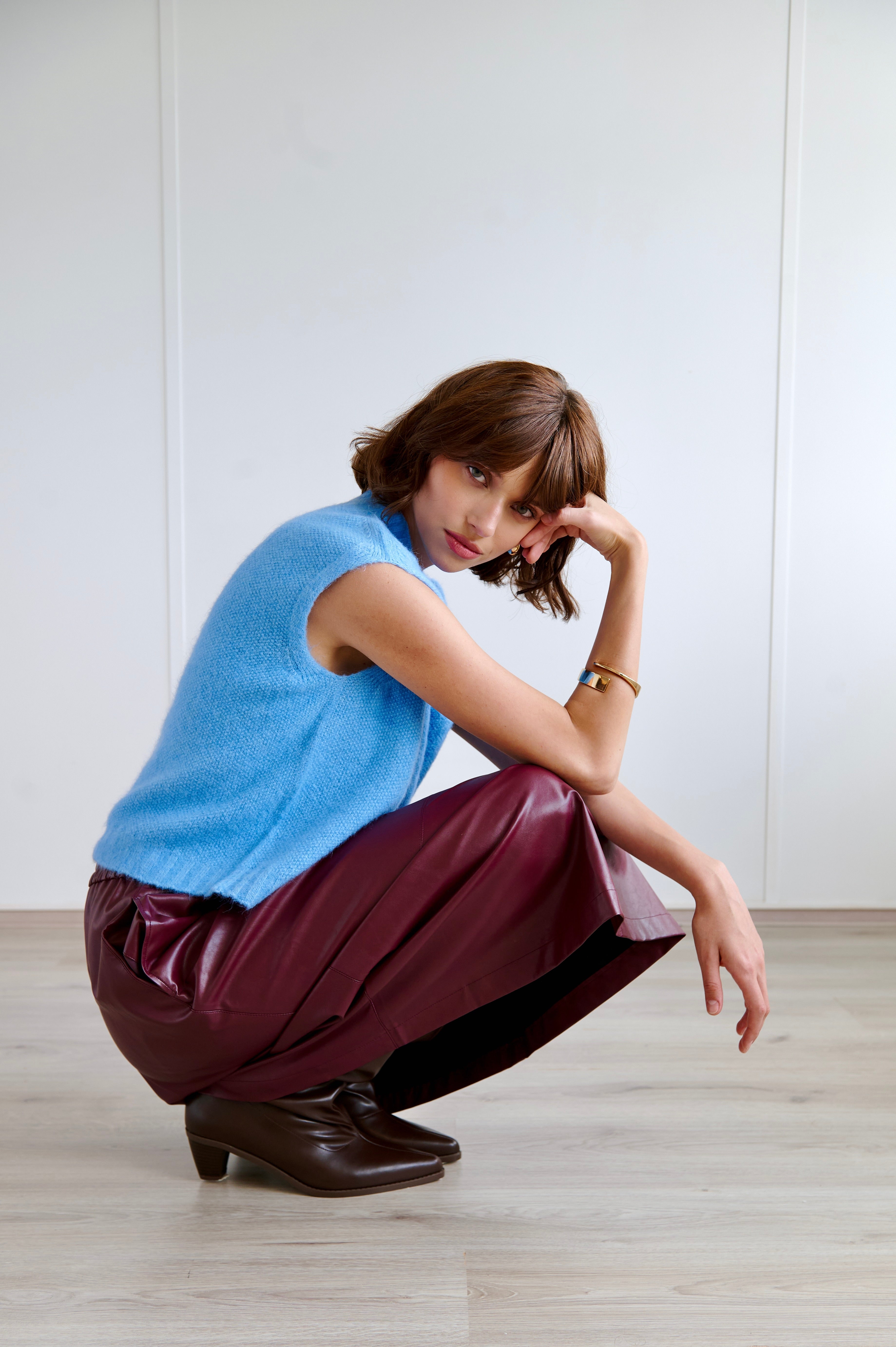 Alpaca Vest H24179 ist das perfekte Layering-Piece für Übergangswetter. Gefertigt aus einer luxuriösen Alpakamischung, bietet diese ärmellose Strickweste gleichermaßen Weichheit und Struktur. Der hohe Halsausschnitt und die lockere Passform machen sie ideal über Hemden, Kleider oder leichte Tops für einen eleganten und bequemen Look.