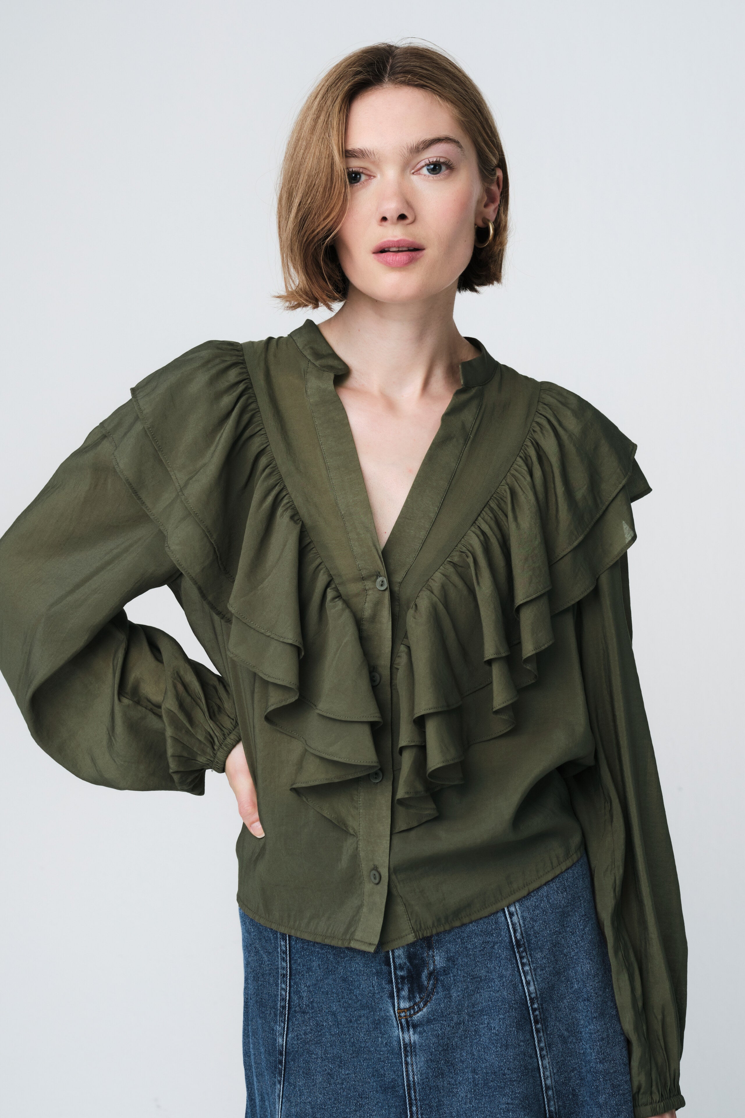 • V-Ausschnitt mit Rüschen