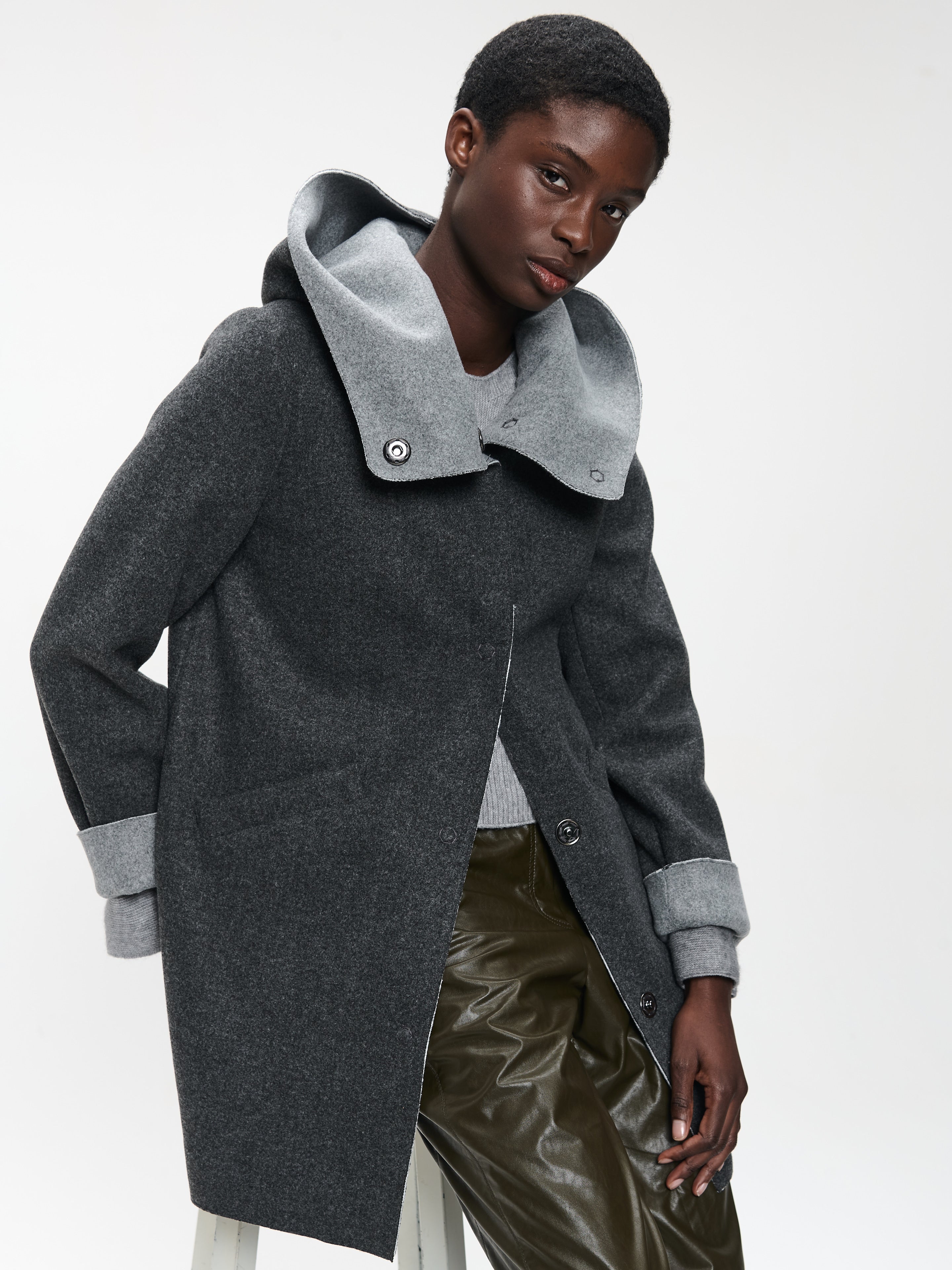• Breite Kapuze mit kontrastierendem Futter